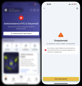 2. Eğer yeni kullanıcı değilseniz ve platformdaki bir önceki KYC’nizin süresi dolmuşsa, mor renk KYC ekranından “Nedenlere Bak & Tekrar Başvur” sekmesine tıklayarak süreci başlatabilirsiniz.