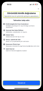 Görüşme sırasında kimliğinizi yanınızda bulundurmanız ve sessiz, iyi aydınlatılmış bir ortamda olmanız önerilir.