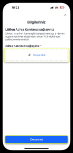 Dosyanızı yükledikten sonra “Devam et” seçeneğine tıklayarak sürece devam edebilirsiniz. Bu bilgi, yalnızca doğrulama sürecine yardımcı olmak amacıyla sistemde kullanılır.