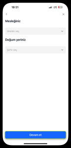 Bu adım, kullanıcı profilinin tamamlanması için gereklidir. Mesleğiniz ve doğum yeriniz gibi temel bilgileri sağlamanız istenir.