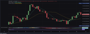 BTC şu anda $69.704 seviyesinde işlem görüyor. MA(7) olan $69.491’in hemen üzerinde konumlanmış durumda ve MA(20) olan $68.081 de alttan destek sağlıyor. RSI 56.52 seviyesinde nötr-pozitif bölgede; bu da aşırı satım ya da aşırı alım baskısı olmadan yükseliş yönünde hafif bir eğilim olduğuna işaret ediyor. MACD pozitif bölgede seyrediyor ve kısa vadeli momentumun alıcılar lehine olduğunu teyit ediyor.
